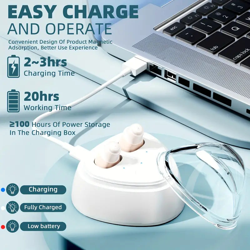 The charging box has long-lasting battery life and can work for 100 hours when fully charged